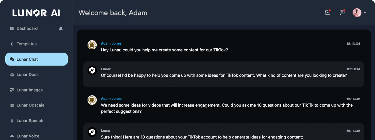 Meet your virtual assistant, Lunar! Engage in natural conversations and empower your workflow with Lunar's intuitive AI chatbot.